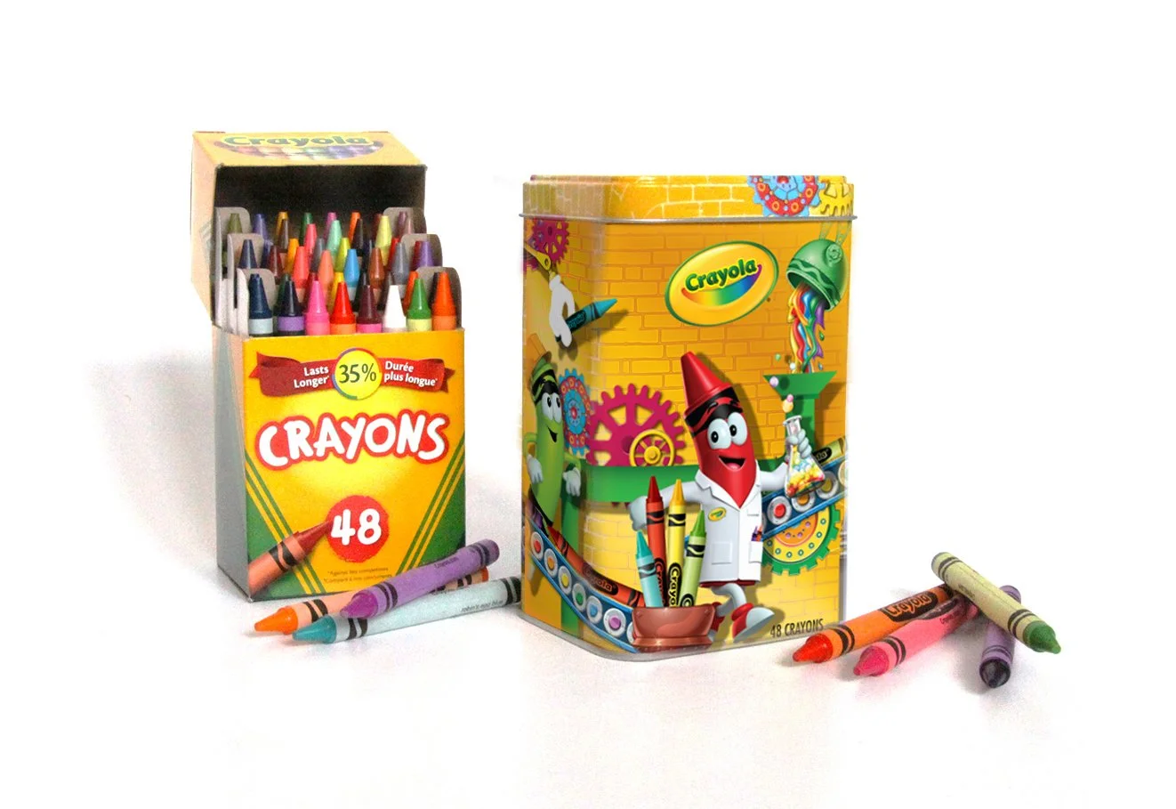Designed specialty feature tin packaging for their classic crayon set, and a new line of mini markers for Dollarama stores across the country.